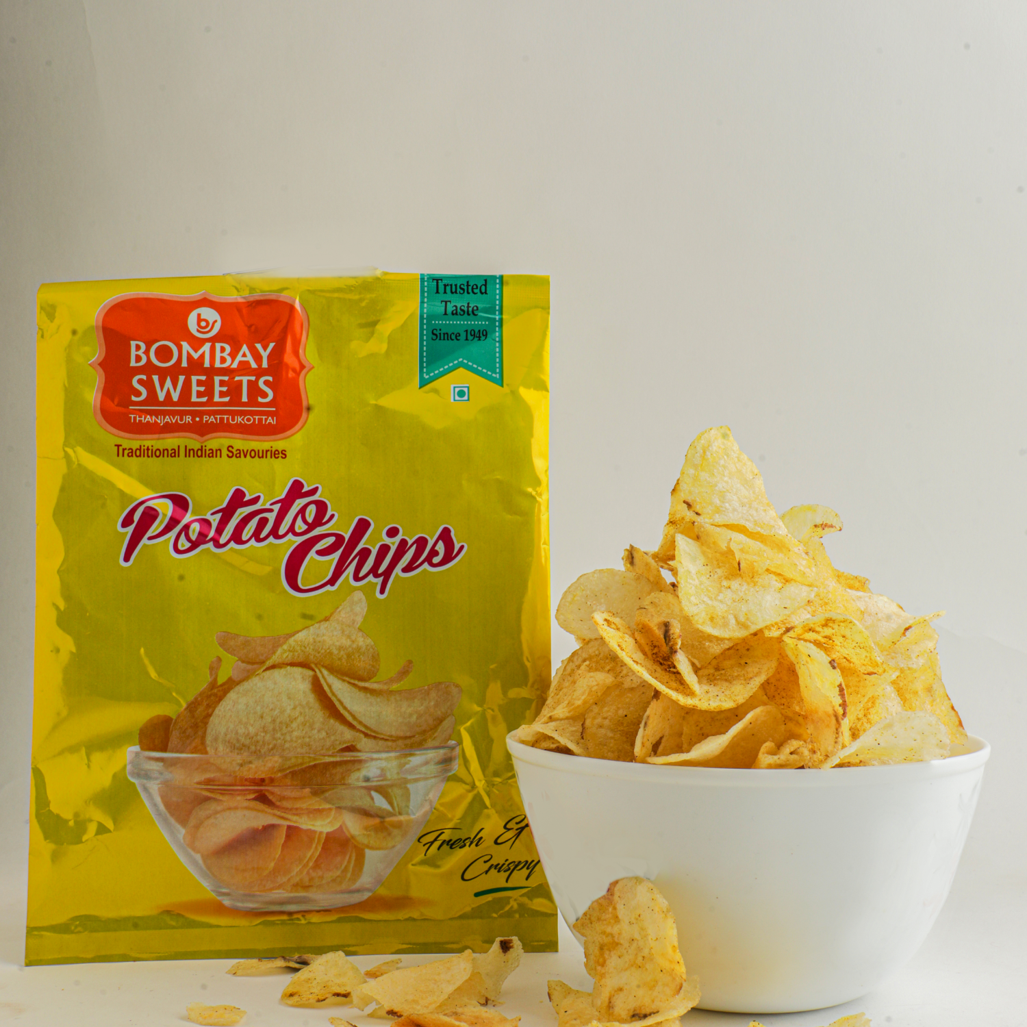 Our potato chips are a favorite among children and adults alike. Made with the freshest potatoes and a special blend of spices, our potato chips are crispy, crunchy and absolutely delicious! They are made using traditional methods under hygenic conditions. Its unique texture and taste make it stand out from others. Perfect for movie nights, travel or just as a tasty snack.
